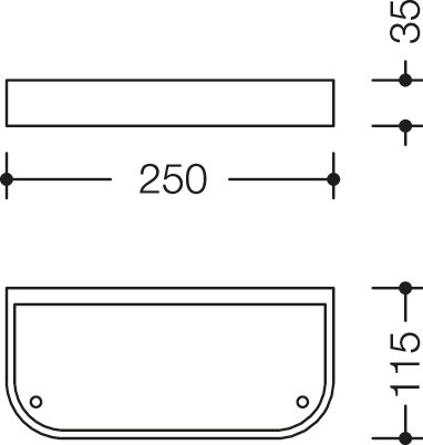 - 250 mm breit, 35 mm hoch und 115 mm