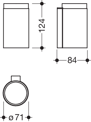- Durchmesser 71 mm, 124 mm hoch und 84
