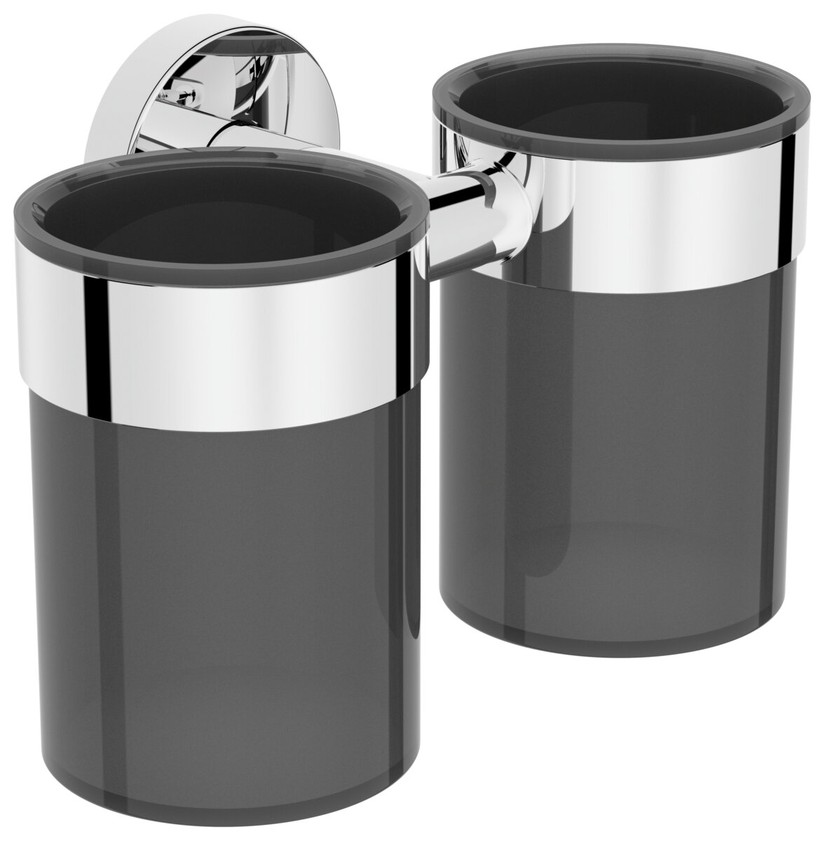 Weil doppelt bekanntlich besser hält, präsentiert sich dieses Nikles Accessoire mit gleich zwei Glasbehältern – so eignet sich das Set auch ideal für Familien. Die stilsichere, anspruchsvolle Optik entsteht dabei durch den Mix aus dunklem Glas und edel verchromten Halter-Elementen. Zur praktischen Wandmontage konzipiert, halten die Glashalter Zahnbürste und Zahnpasta immer griffbereit.