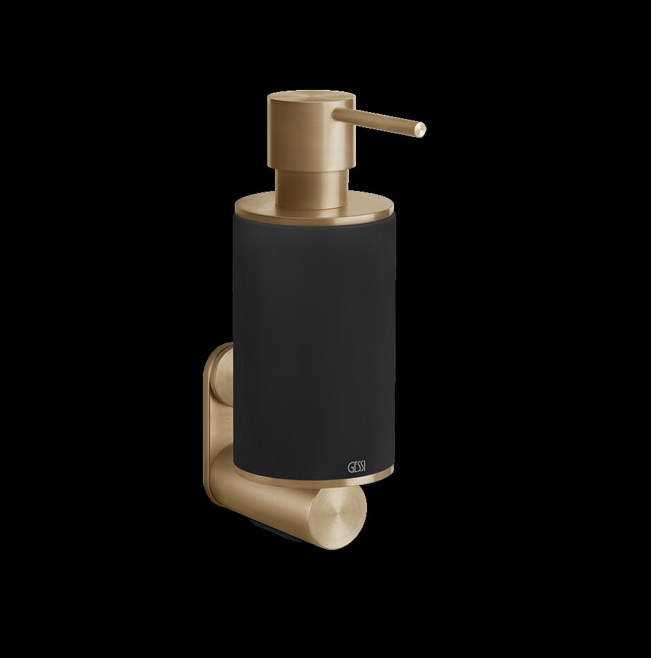 Mit dem Seifenspender 316 des italienischen Herstellers Gessi erhält ein meisterhaft inszeniertes Accessoire Einzug ins Badezimmer. Fein gerundete Formen und die Material-Kombination aus schwarz-matter Verkleidung und gebürstetem Edelstahl kreieren ein Design, das Ruhe, Luxus und Ausgeglichenheit ausstrahlt. Der Gessi316 Seifenspender ist zur Wandmontage gefertigt und punktet mit bester Funktionalität sowie handschmeichelnden Eigenschaften.