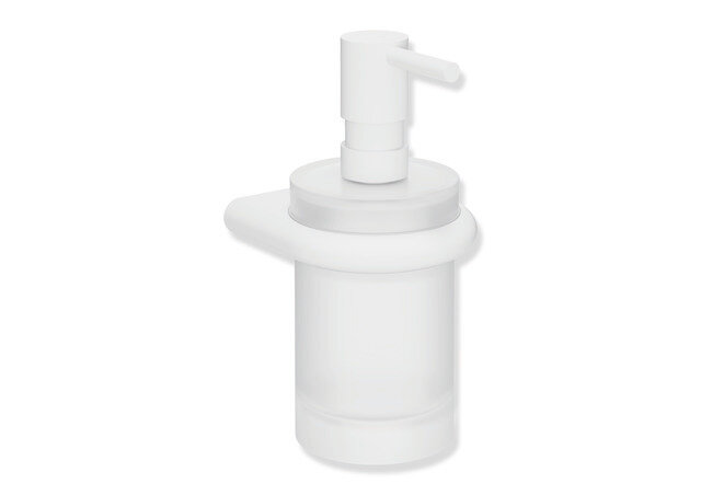 Der Seifenspender aus satiniertem Kristallglas eignet sich ideal für handelsübliche Flüssigseifen, Desinfektionsmittel und -gele. Dank verdeckter Wandbefestigung fügt sich das Ensemble harmonisch und hochwertig in die moderne Badarchitektur ein.