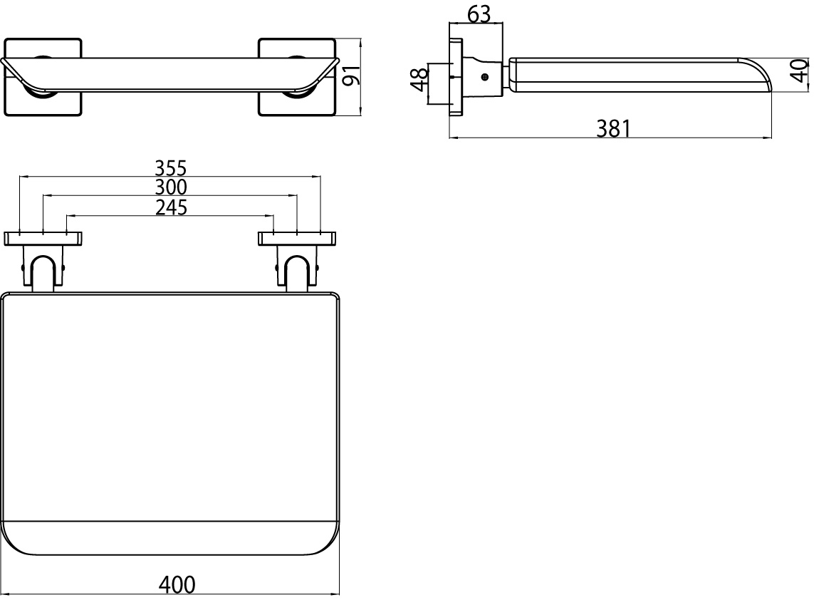 Klappsitz derby V3 plus 400x91x381mm belastbar bis 110 kg verchromt VIGOUR