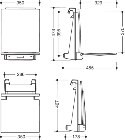 HEWI Einhängesitz,B:350,f.Profil d:33 Sitzf.u.Einhängung weiss signalweiss