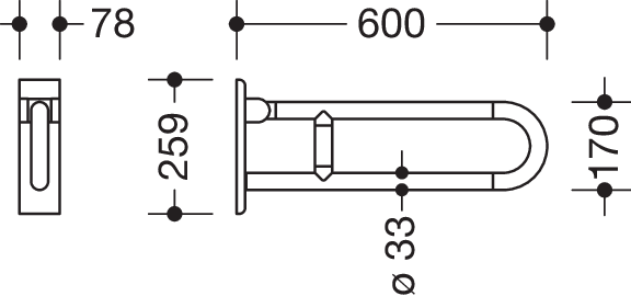 Für jeden Bedarf die optimale Ausführung: Der Klappgriff des Herstellers HEWI ist ein wahrer Klassiker in moderner, fortschrittlicher Umsetzung; ob mit zusätzlichem Armpolster oder in verschiedenen Größen. Das Konzept besteht aus zwei parallelen, übereinander angeordneten und durch einen Verbindungsbogen zusammengefügte Stangen. Bis zu 100 kg belastbar, kann der Stützgriff nach oben und gebremst nach unten geklappt werden und unterstützt damit zuverlässig im Badezimmeralltag.
