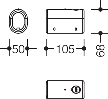 - 50 mm breit, 68 mm hoch, 105 mm lang