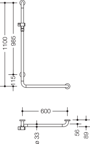 Winkelgriff Hewi m.Brausestange 600x1100mm reinweiss