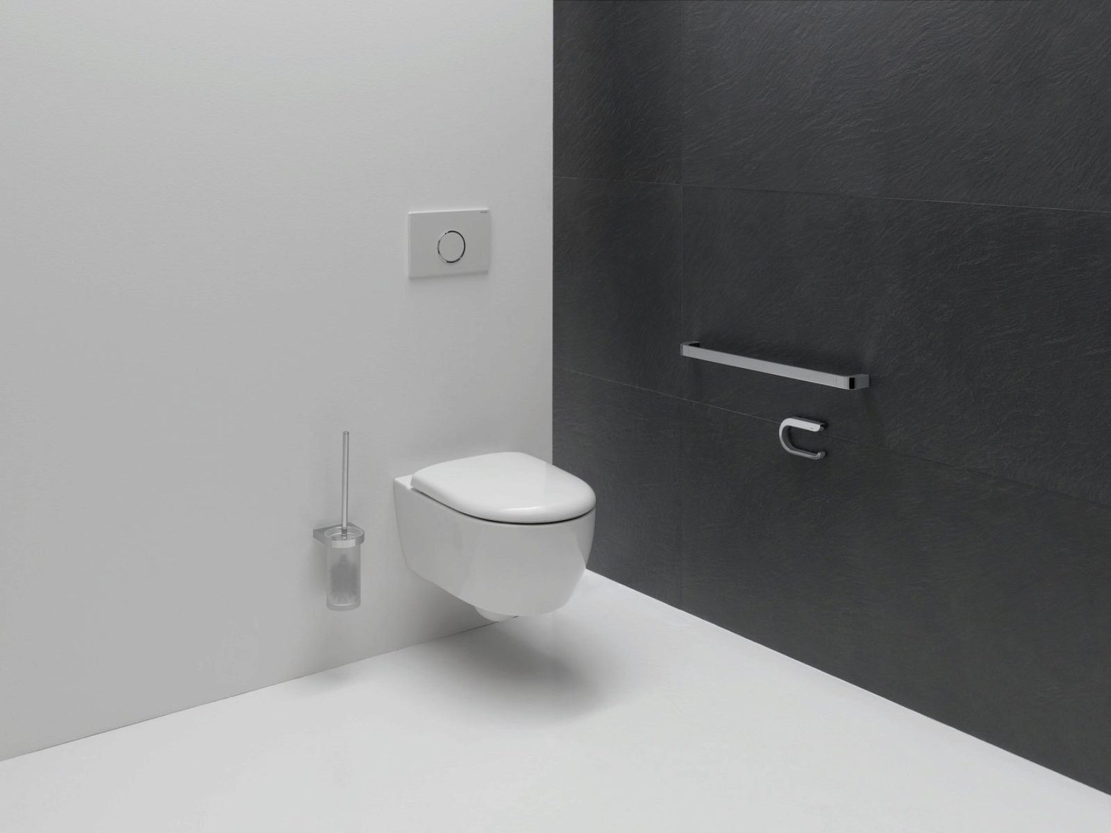 Die Hewi Bürstengarnitur aus der Serie System 800 präsentiert sich als vollkommenes Komplettset und besteht aus WC-Bürste, Bürstenglas und ringförmigem Wandhalter. Dabei ergibt die hochwertige Material-Kombination aus satiniertem Kristallglas und verchromtem Metall eine edle Gesamterscheinung. Die harmonische Formensprache entsteht hier durch die weich geschwungene, klare Linienführung. Praktischer Clou: Der integrierte Schutzring verspricht eine sichere Position der Bürste und schützt das Bürstenglas außerdem zuverlässig. Dank der bodenfreien Wandmontage lässt sich die System 800 Bürstengarnitur aus dem Hause Hewi ganz einfach dort anbringen, so Sie sie am besten erreichen können.