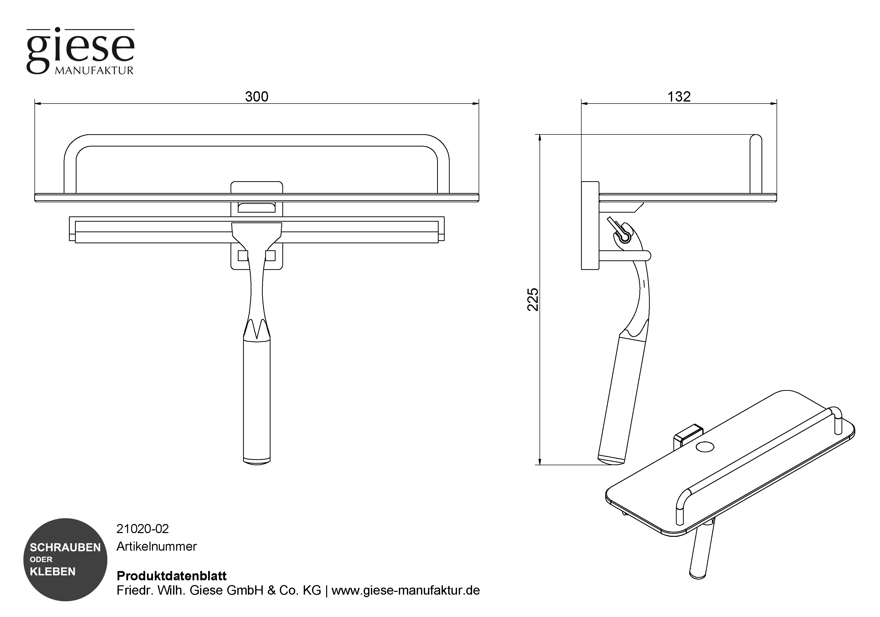 Dusch Konsole Reling und Duschwischer chrom HPL weiß Giese