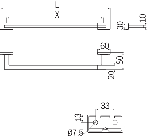 INDA Handtuchhalter cm66X8 H3LEA 1800