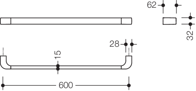 - Achsmaß 600 mm, 62 mm tief