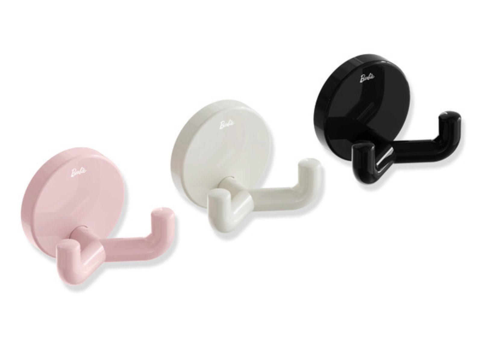 Die drei stilvollen Haken aus der Barbie™ x HEWI Kollektion in Rosa, Schwarz und Weiß eignen sich ideal für die Aufbewahrung von Handtüchern im Badezimmer oder als Kleiderhaken für Jacken. Das Dreamteam bietet praktische Ordnung und bringt gleichzeitig einen Hauch des ikonischen Barbie Stils in Ihr Zuhause - sowohl elegant als auch vielseitig.