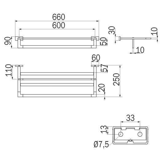 INDA Handtuchhalter cm66X25 H9LEA 1800