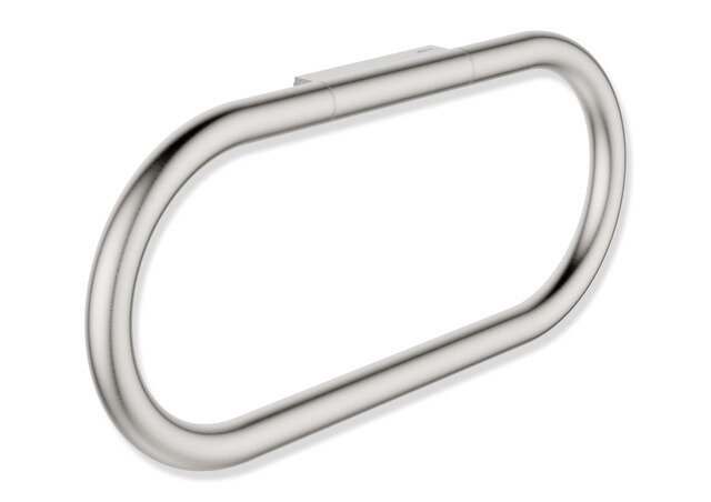 Der HEWI Handtuchring der Serie 480 überzeugt mit seinem oval geformten, geschlossenen Design aus matt geschliffenem Edelstahl. Der Ring lässt sich komfortabel schwenken und bietet eine stilvolle Möglichkeit, Handtücher oder Kleidungsstücke aufzuhängen. Dank verdeckter Wandbefestigung fügt er sich harmonisch und hochwertig in jede Badarchitektur ein.