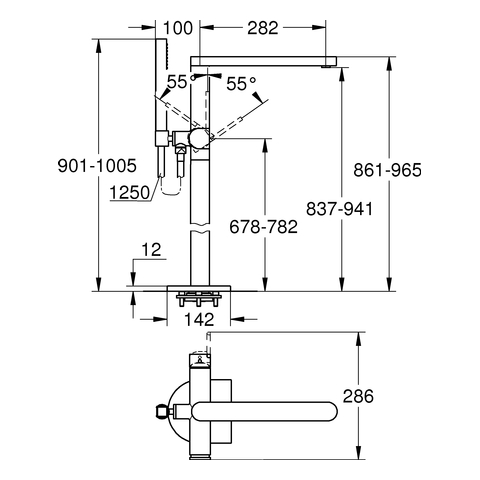 Ausladung 282 mm