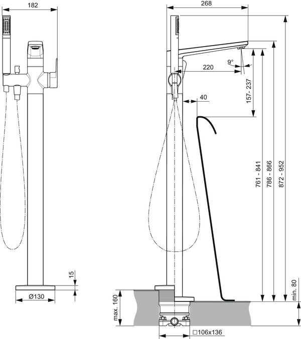 Mit der luxuriös freistehenden Badewannenarmatur Tonic II von IDEAL STANDARD verleihen Sie Ihrem Badezimmer extravagantes Flair – mit Wiedererkennungswert. Reine Klarheit prägt das softe, geometrische Design und macht die Armatur zu einem Stil-Garanten für ästhetische Vollendung. Aufgrund ihres freistehenden Konzeptes eignet sie sich perfekt als Ergänzung für die freistehende Badewanne. Komplett mit Stabhandbrause, Auslauf und Regulierung ausgestattet, wartet die Wannenarmatur außerdem mit funktionellen Feinheiten auf: So erweisen sich die Temperaturbegrenzung und die Heißwasser-Sparfunktion als besonders praktisch.