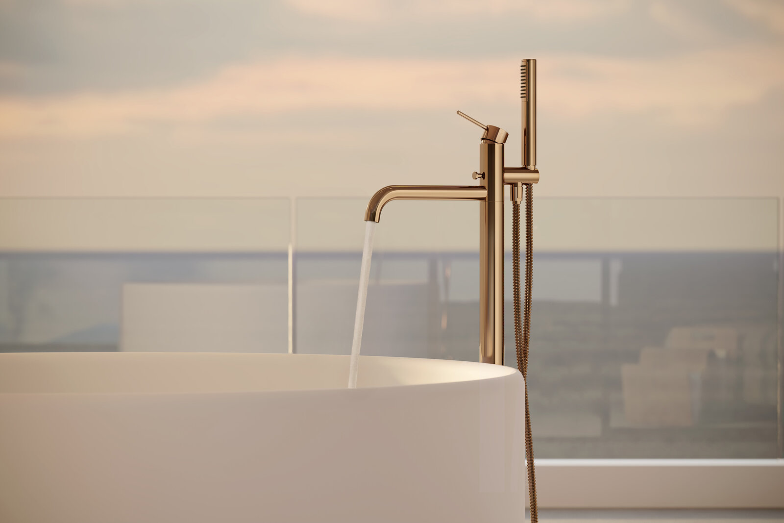 Freistehende Wannenarmatur Velis mit Stabhandbrause