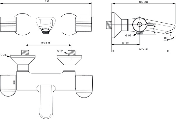 Dieses zweigriffige Wannenthermostat CeraPlus 2 von IDEAL STANDARD zeichnet sich durch zeitloses Design und maximalen Bedienkomfort aus. Die integrierte Temperatursperre schützt vor Verbrühungen sowie Kreislaufbeschwerden. Mit leicht bedienbarem Umschaltregler für den unkomplizierten Wechsel von Wannenauslauf auf Brause.