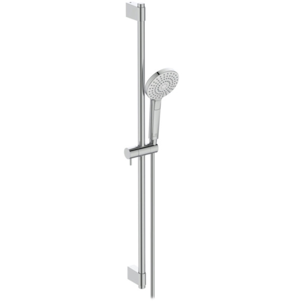 Die Brausegarnitur Idealrain Evo von Ideal Standard bietet Ihnen ein luxuriöses Duscherlebnis mit modernem Design. Die elegante Brausestange und die runde Handbrause mit drei wählbaren Strahlarten sorgen für individuellen Komfort. Der flexible Idealflex-Brauseschlauch garantiert Bewegungsfreiheit und eine komfortable Handhabung. Ideal für alle, die ihre Dusche nach ihren eigenen Bedürfnissen gestalten möchten – für ein erfrischendes und vielseitiges Duscherlebnis.