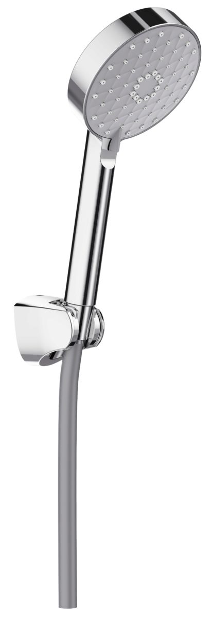 Das Handbrause Awaken Geometric von Jacob Delafon kommt hier mit einem metallenen Wandhalter. Dank der inneren Verstellfunktion mit drei verschiedenen Sprüh-Optionen bietet die Brause herrlichen Duschgenuss. Das MasterClean-System verspricht darüber hinaus eine einfach Reinigung und der glatte Brauseschlauch im Metallic-Look punktet mit praktischem Verdrehschutz.