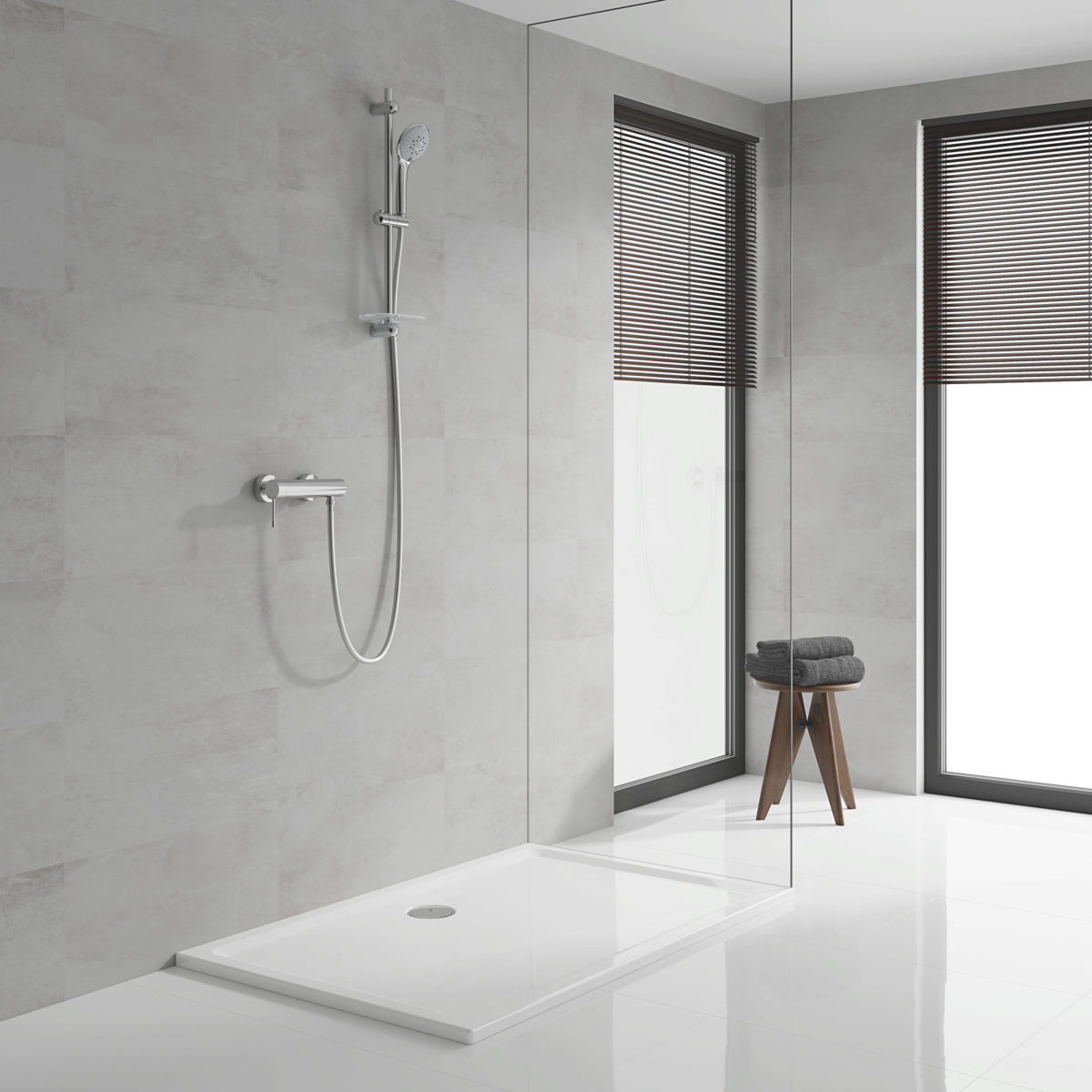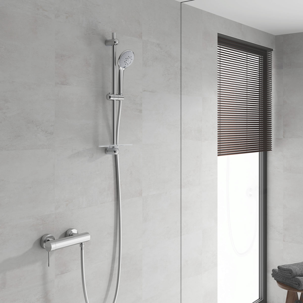Zylindrische Formen und glänzender Chrom prägen den einmaligen Auftritt des Aufputz-Brausemischers Essence von Grohe. Das Design interpretiert modernes Styling – für eine moderne Badgestaltung, die viel Raum für kreative Ideen schafft. Sanft und elegant ist die Grohe Duscharmatur nicht nur in der Form, sondern auch in der Bedienung: Der stabförmige Einhebelmischer macht das Einstellen der passenden Temperatur jederzeit zu einem kinderleichten Vergnügen. Den hohen Bedienkomfort verdankt die Brausearmatur Essence der ausgefeilten Technik. Eine 35-mm-SilkMove-Kartusche sorgt dafür, dass die Armatur viele Jahre lang sanft und genau die Wassermenge und Wassertemperatur regelt. Für jahrelangen Glanz der Brausearmatur sorgt die Grohe StarLight-Chromoberfläche. Dank dieser speziellen Beschichtung lässt sie sich einfach und schnell mit einem trockenen Tuch reinigen – und strahlt wie am Tag der Anschaffung.