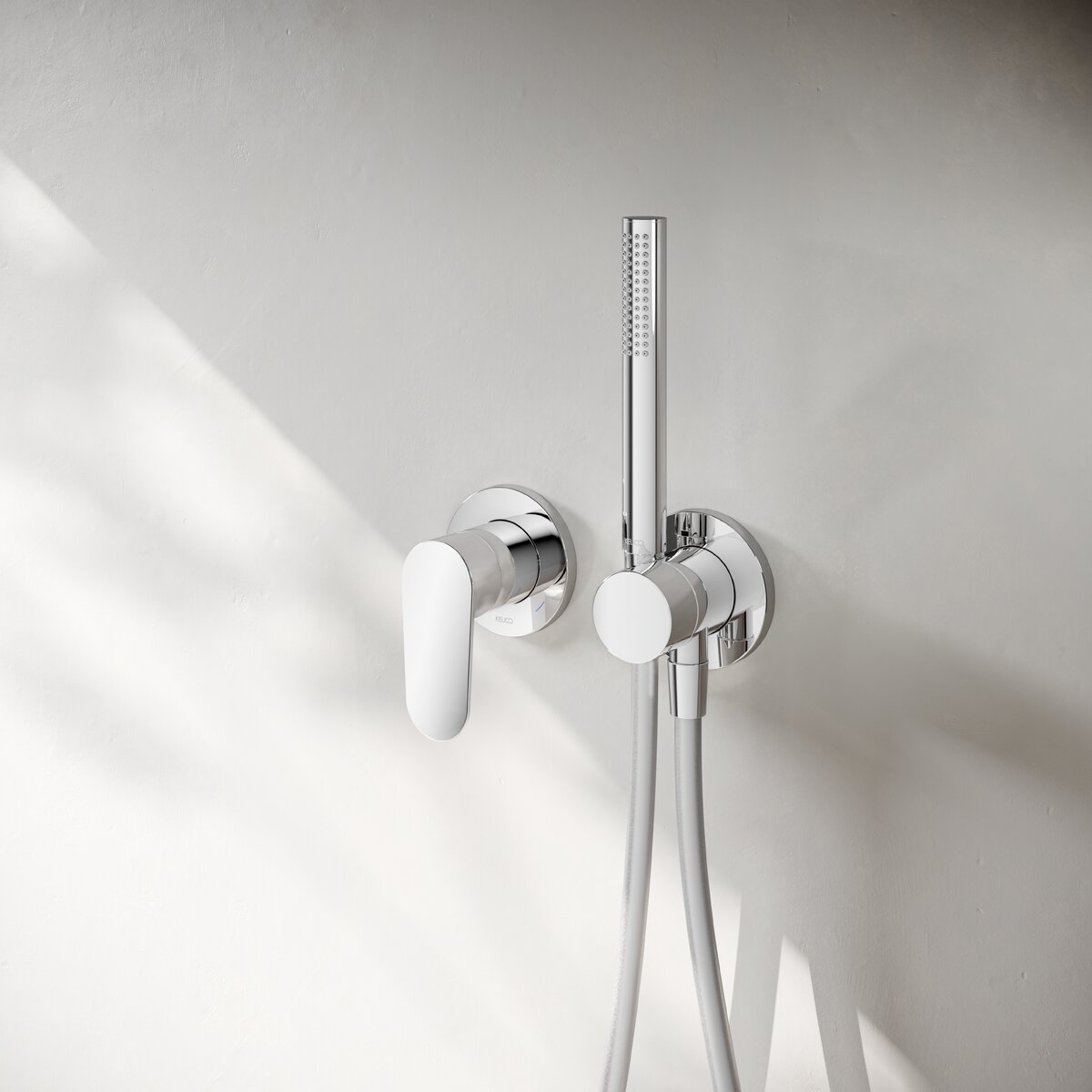 Dieses raffinierte Duo aus der Keuco Ixmo 100 ELEMENTS-Edition ist die perfekte Wahl für moderne Duschgestaltungen. Weniger ist manchmal mehr, lautet hier das Motto. So sind sämtliche Funktionalitäten ist das minimalistische Design integriert. Dank des Bedienelements mit Hebel lassen sich Temperatur und Wassermenge spielend einfach regulieren und der Brauseschlauch mit Handbrause hängt an der passenden Halterung stets griffbereit. Für zeitlosen Charakter sorgt die glanzvolle Chrom-Optik.