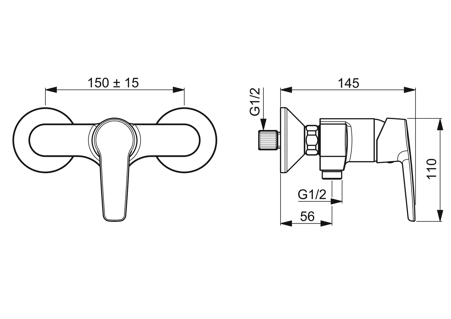- Installationsabstand: 150 +- 15 mm