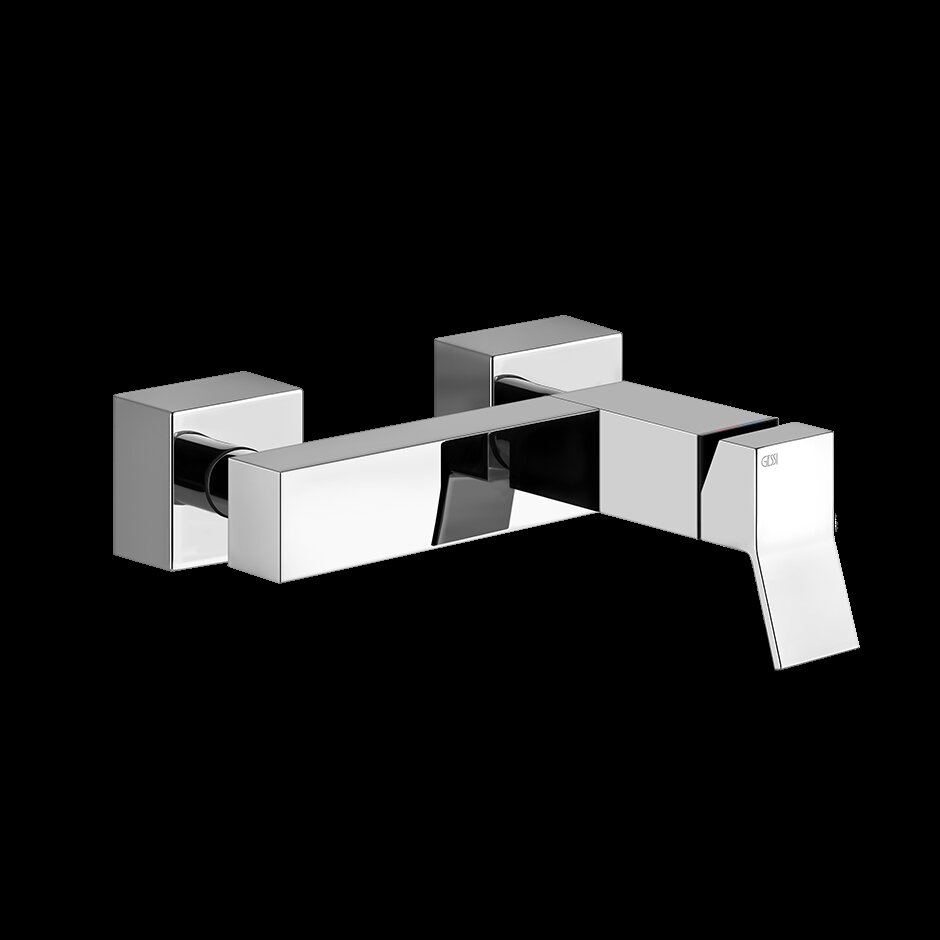 Modern gestaltete Brausebatterie von Gessi aus der Designlinie Rettangolo K. Würfelförmige Rosetten, exakte Linienführung und punktgenau abgepasste Kanten machen aus dieser Armatur einen wahren Blickfang, der die Leidenschaft für elegantes, italienisches Design in die Dusche holt. Zeitlos und gleichzeitig ein Ausdruck modernster Kreativität ist die Linie Rettangolo K genau das Richtige für Individualisten, die ihrem Badezimmer in jedem Winkel etwas Besonderes verleihen wollen.