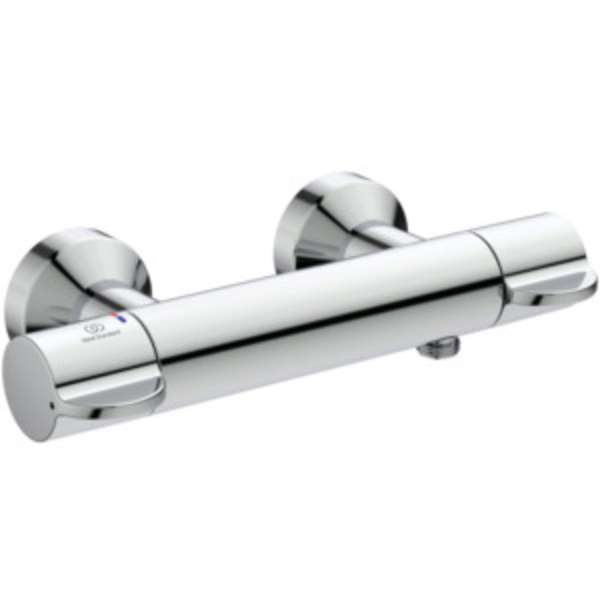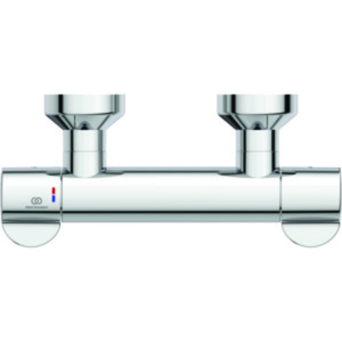 Das Duschthermostat CeraPlus 2 von Ideal Standard ist mit zwei symmetrisch angeordneten Griffen ausgestattet. Dabei kennzeichnet eine gut sichtbare Rot-Blau-Markierung die Temperaturregulierung. Zudem sorgt eine Heißwassersperre vor gefährlichen Verbrühungen.
