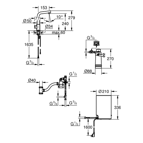 Grohe Standventil und Boiler Red Mono 30339 M-Size L-Auslauf chrom