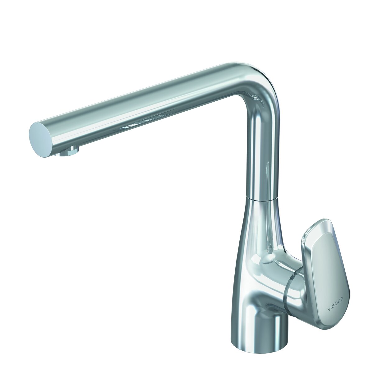 Die Spültischarmatur derby V3 style von VIGOUR präsentiert sich in edler Silhouette und begeistert so mit einem anspruchsvollen Gesamtdesign. Vor allem die gelungene Kombination aus weichen Schwüngen und präzisen Linien beeindruckt hier und der leicht trichterförmige Sockel wird zum Design-Highlight. Die derby V3 style Küchenarmatur mit seitlicher Bedienung punktet hier auch mit praktischen L-Auslauf, der sich angenehm schwenken lässt.