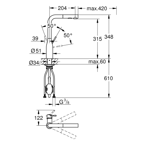 herausziehbare Dual Spülbrause