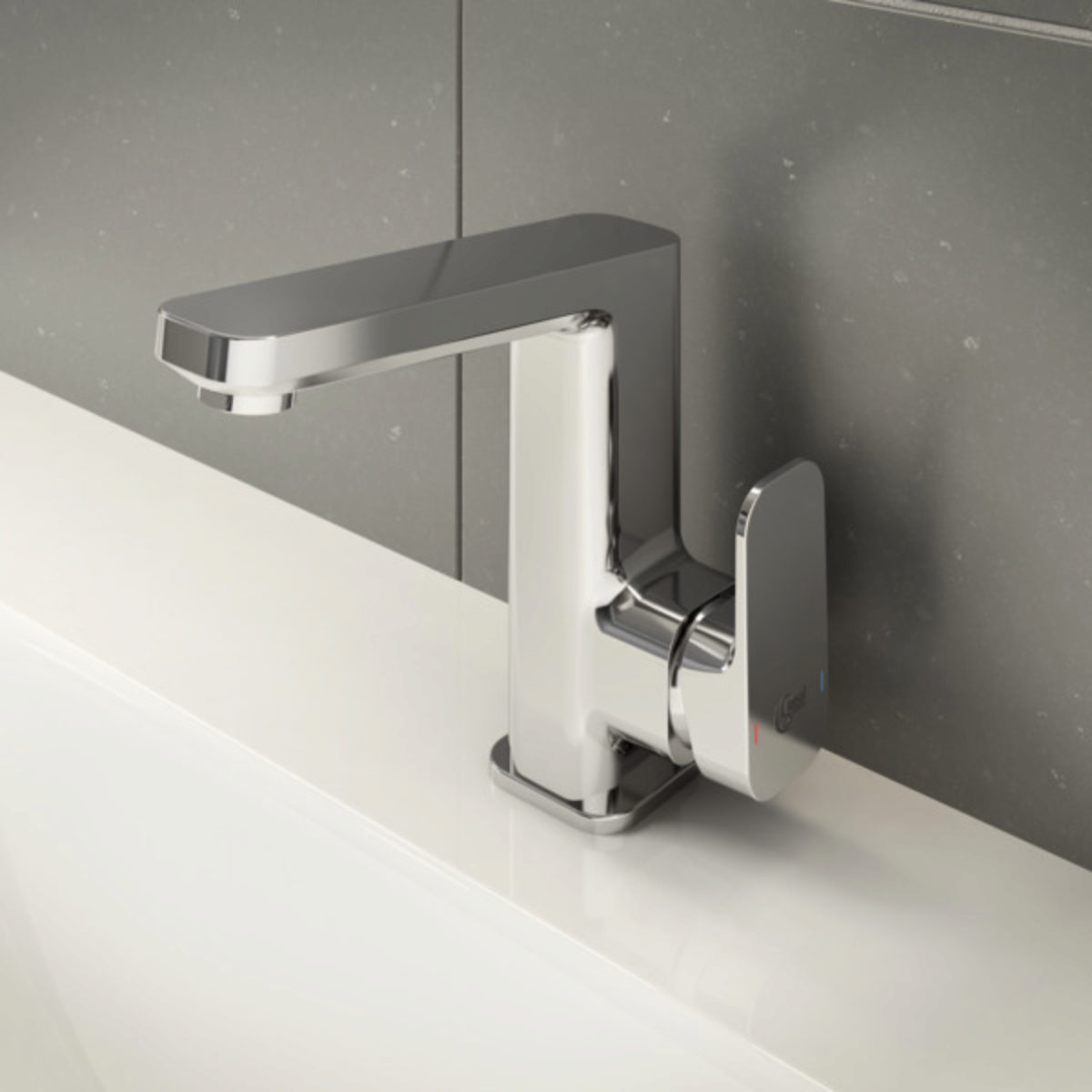 Mit ihrem sanften und zugleich präzisen Design fügt sich die Waschtischarmatur aus der designprämierten Ideal Standard Serie Tonic II ästhetisch ins moderne Badambiente ein. Der softpuristische Look wird von faszinierenden Details geprägt, zu denen hier auch die seitliche Bedienung gehört. Dank ihrer kompakten Ausführung passt die Tonic II Armatur optimal auch in kleine Bäder oder ins Gäste-WC.