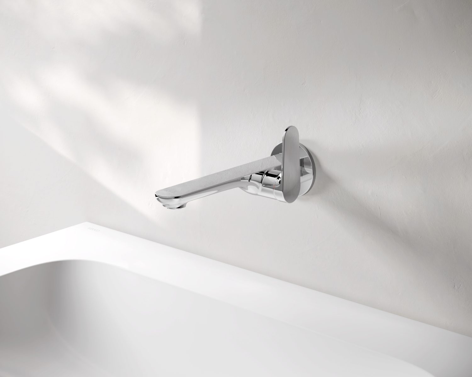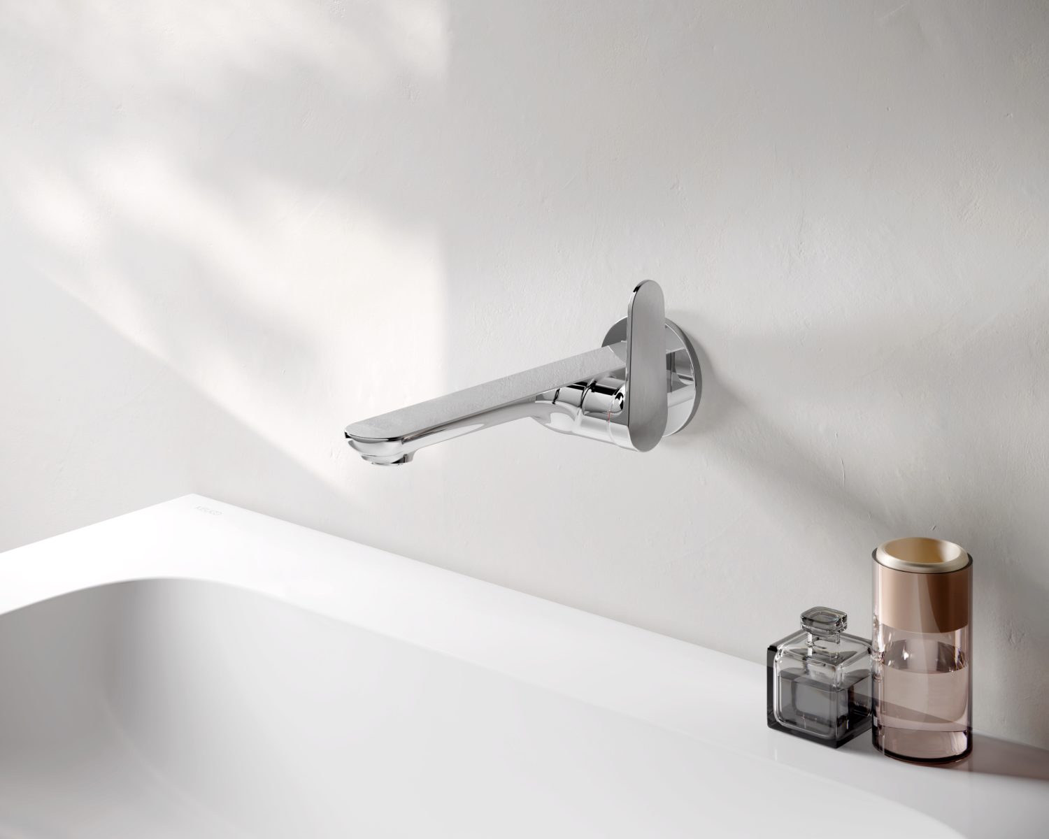 Eine außergewöhnliche Ergänzung für den Waschbereich stellt die Wand-Waschtischarmatur Ixmo 100 ELEMENTS-Edition von Keuco dar. Wie ihr Name schon sagt, ist sie zur Wandmontage gestaltet und schmückt das Waschbecken auf besonders exklusive Weise – für geschickte Hingucker im Bad. Zeitlos glänzend verchromt, begeistert das Design mit makelloser Formgebung und besonders einfach zu regulierendem Hebel seitlich. Die Wandarmatur punktet außerdem mit verstellbarem Strahlregler.