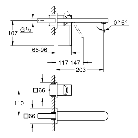 GROHE 2-L-WT-Wandbatterie Plus FMS für 23200 Ausladung 203mm chrom