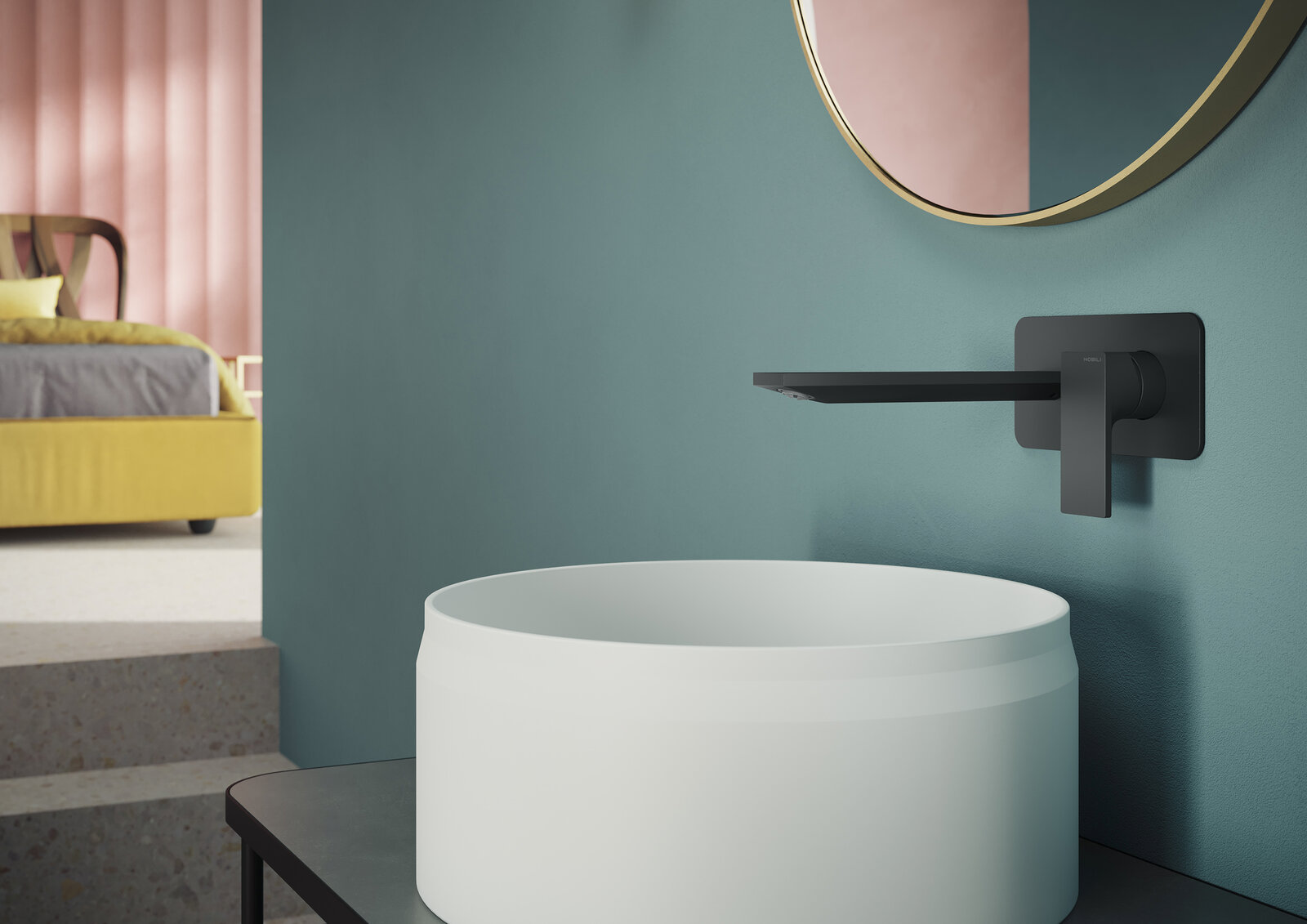 Hebel und Auslauf dieser NOBILI Waschtischarmatur Seven präsentieren sich in extra flachem, klarkantigem Design. Eine Konsolenplatte mit abgerundeten Ecken verbindet die beiden Komponenten auf elegante Weise. Ausgestattet mit einem Durchflussbegrenzer hilft die Armatur außerdem dabei, den Wasserverbrauch zu reduzieren.