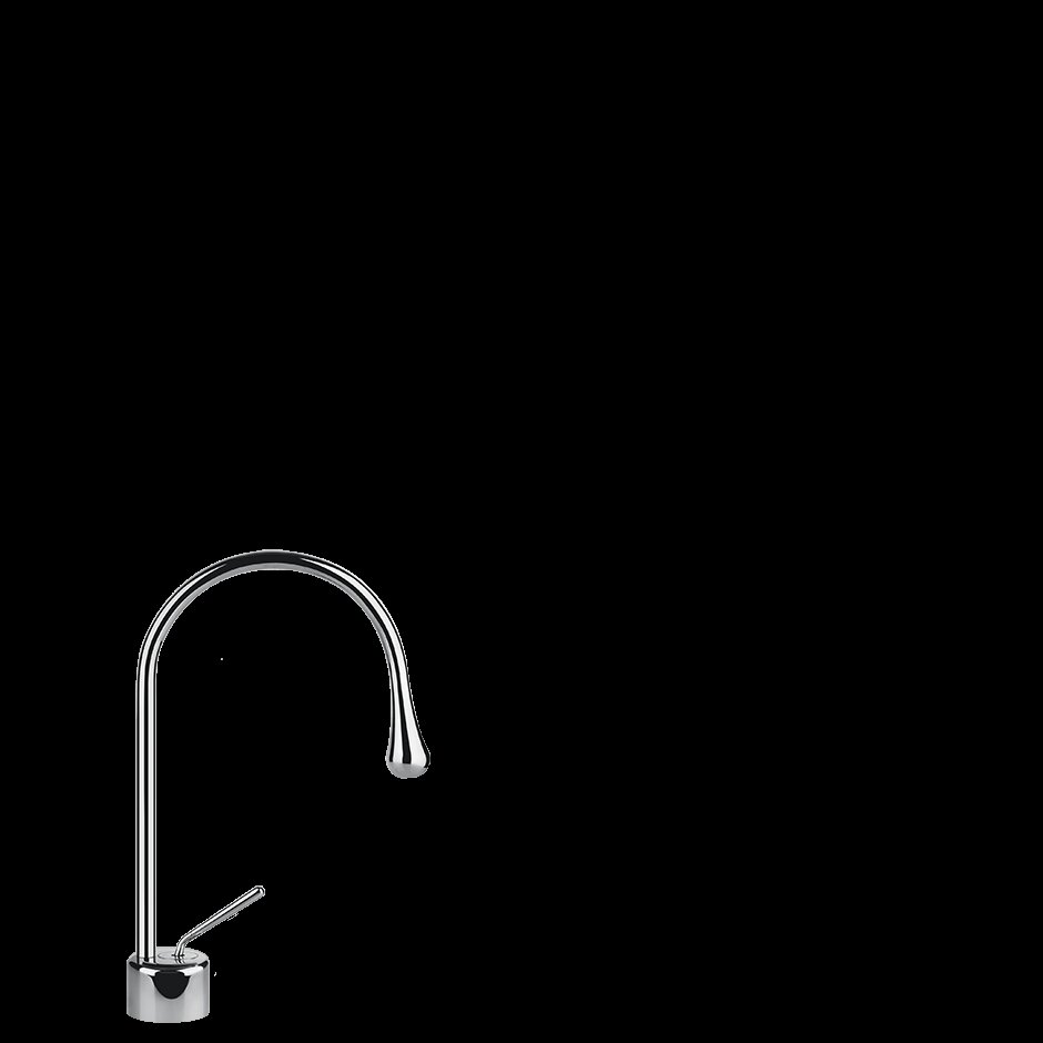 Der tropfenförmige Einhebelmischer ist ein Meisterstück moderner Designkunst. Geschickt nimmt er die fließende Bewegung des Wassers in seine Formgebung auf und spielt mit der Dynamik der Flussrichtung.