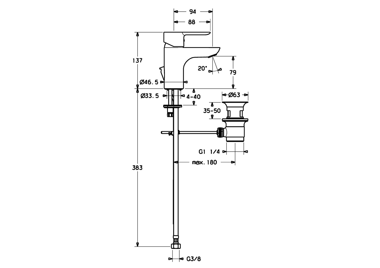 Einhand-Waschtischbatterie Hansaligna Piccolo m.Ablaufgarnitur verchromt