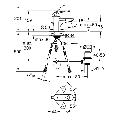 Einhand-Waschtischbatterie Europlus NEU m.Abl-G.u.ausz.Auslauf m.RV verchr.Grohe