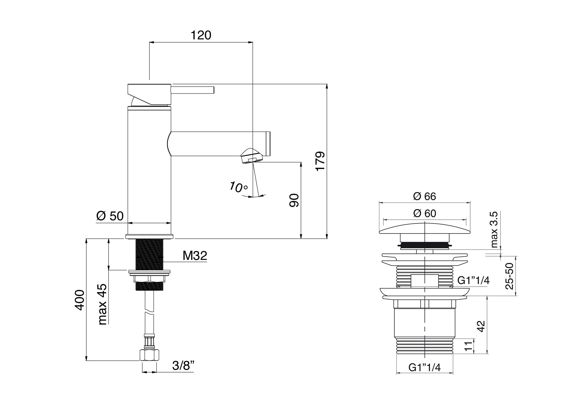Einh.-Waschtischbatt.m.Push Ablaufgarn. Auslaufh.90mm verchromt/carbon Nikles