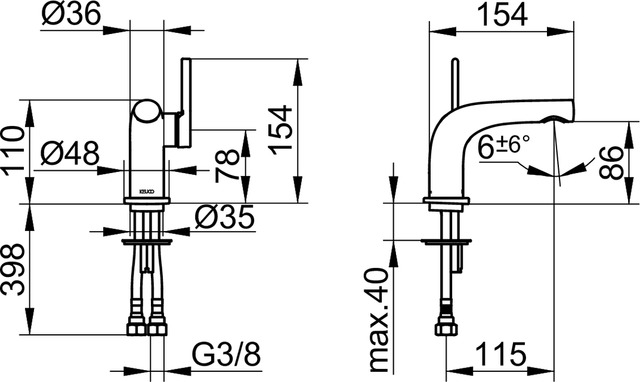 Waschtischarmatur mit seitlichem Bedienhebel Edition 400
