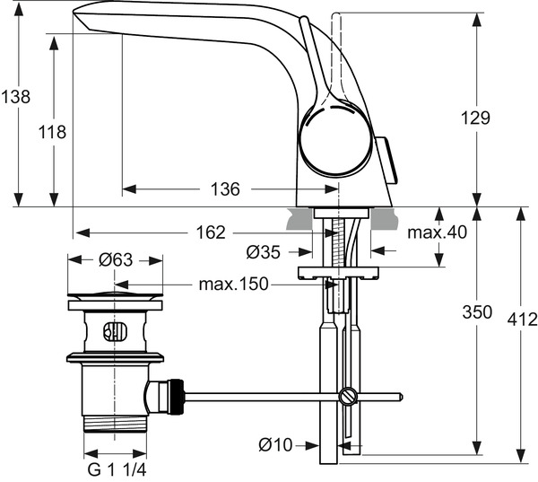 Einhand-Waschtischbatterie Melange m.Ablaufgarnitur verchromt Ideal St.