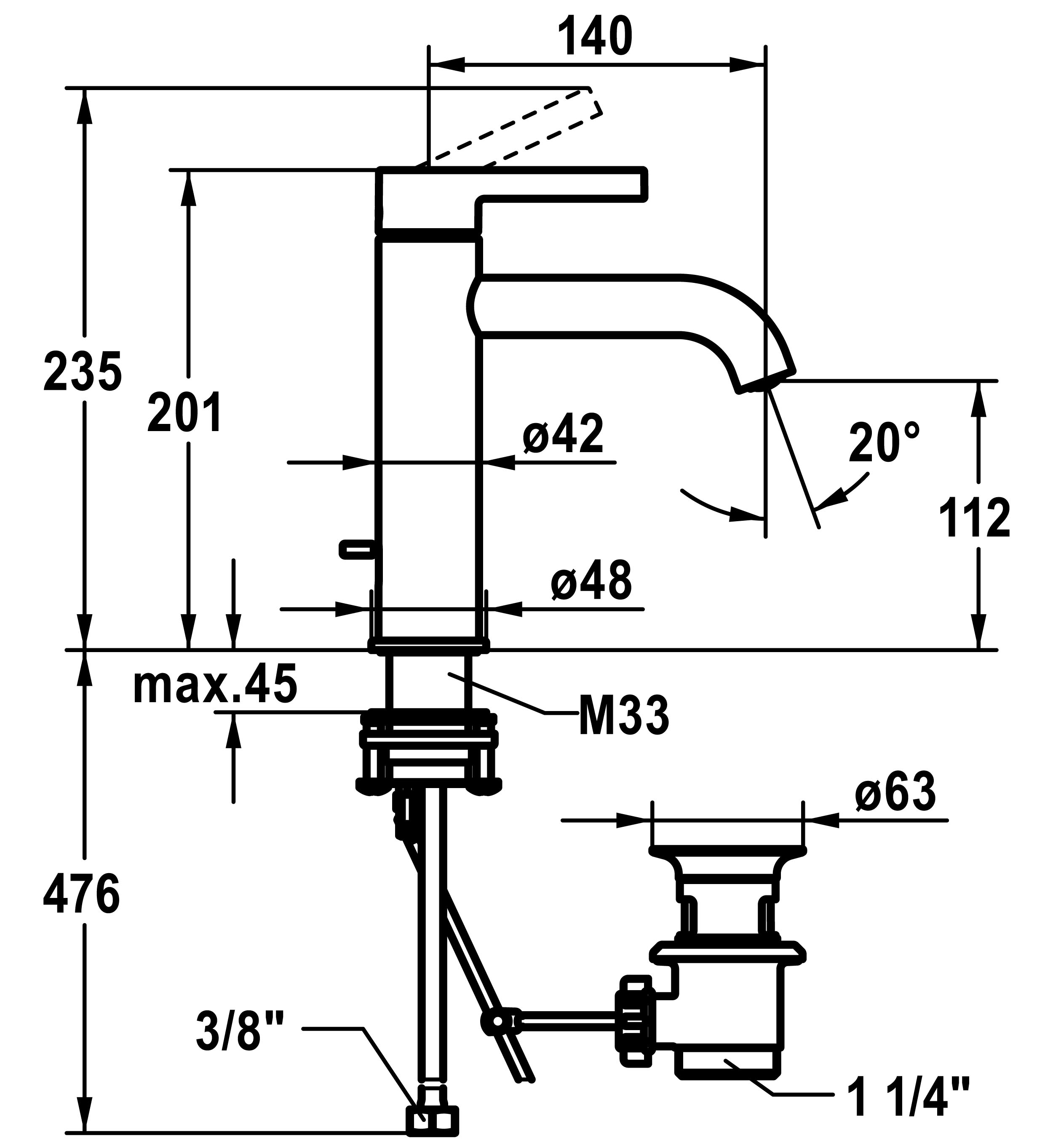 Einhand-Waschtischbatterie BEVO 140mm m.Ablaufgarnitur verchromt KWC