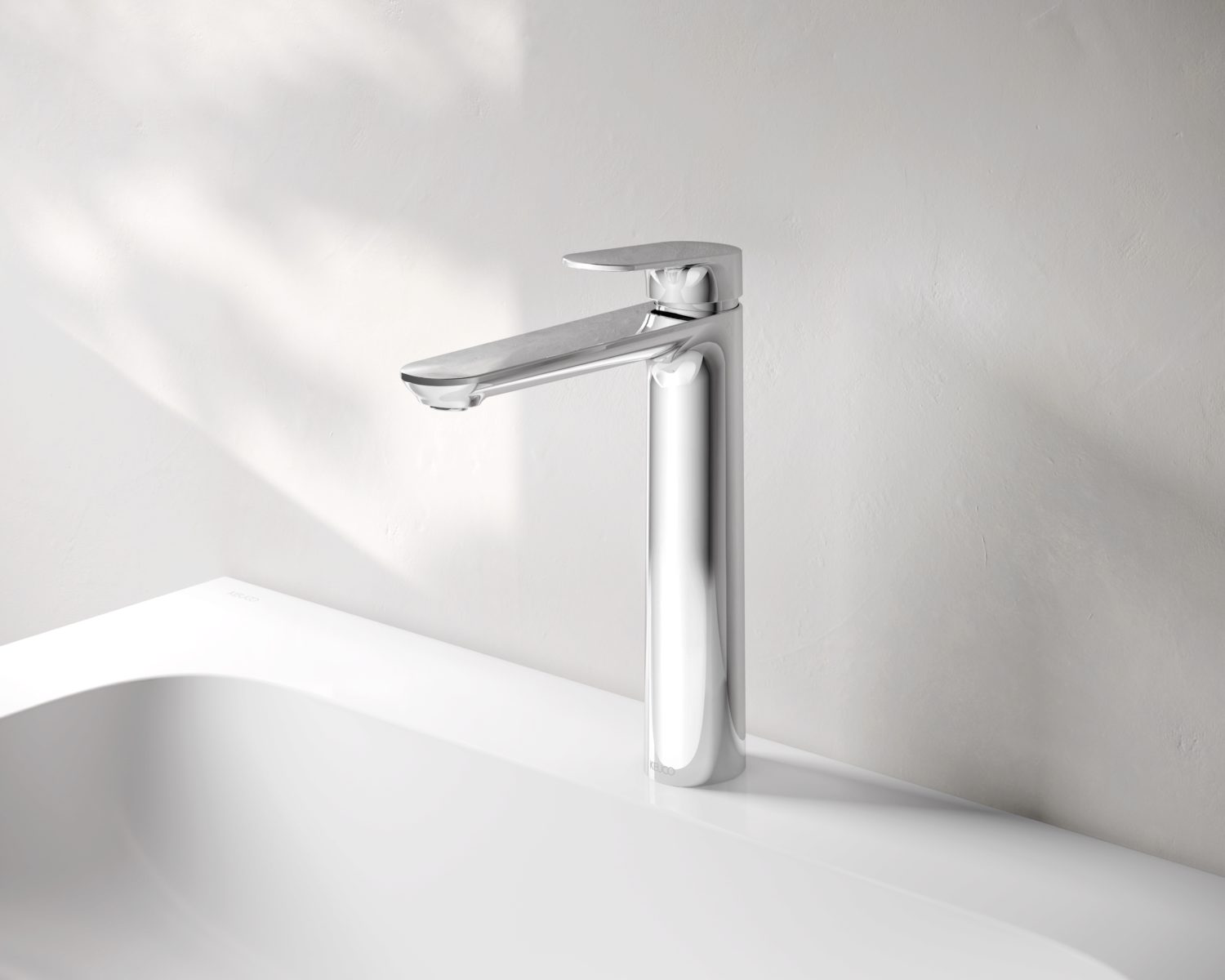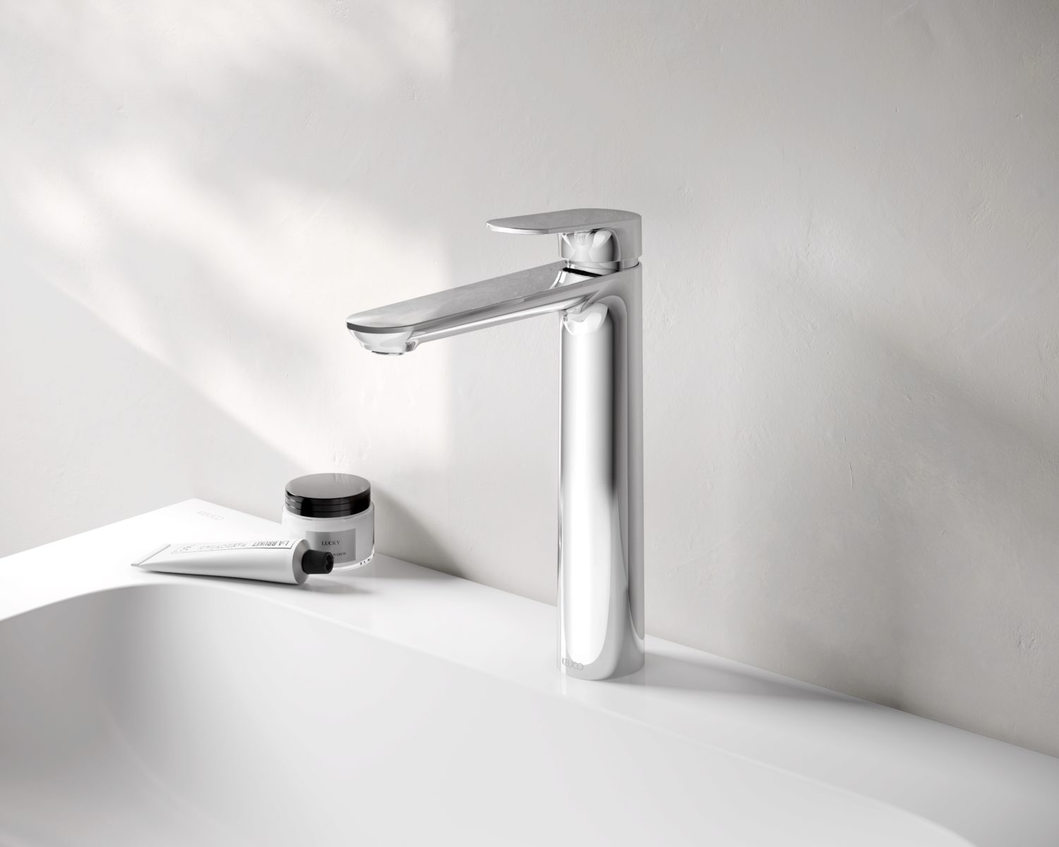 Geradlinig, schlicht und elegant: Dies sind die herausstechenden Kennzeichen der Waschtischarmatur Ixmo 100 ELEMENTS-Edition von Keuco. Dank ihrer schlanken Silhouette verspricht sie Anmut und versprüht darüber hinaus luxuriösen Charme. Nichts lenkt hier von der cleanen Eleganz ab. Die extra hohe Ausführung macht die Armatur zudem perfekt für Aufsatzschalen und -becken.