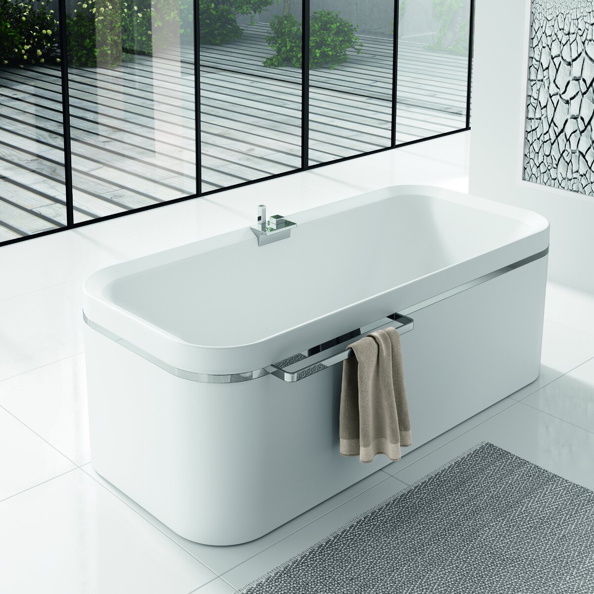 Abgerundete Ecken, weiß glänzendes Acryl und eine unverkennbare Formensprache machen die Einbauwanne Divina von Novellini zum Glanzpunkt in jedem Badezimmer. Das elegante Design besticht mit einem Höchstmaß an Ästhetik und fügt sich stilbewusst ins moderne Raumambiente ein. Hier können Sie entspannen und vom Alltag abschalten. Freuen Sie sich auf unvergessliche Bademomente – mit der Badewanne Divina.