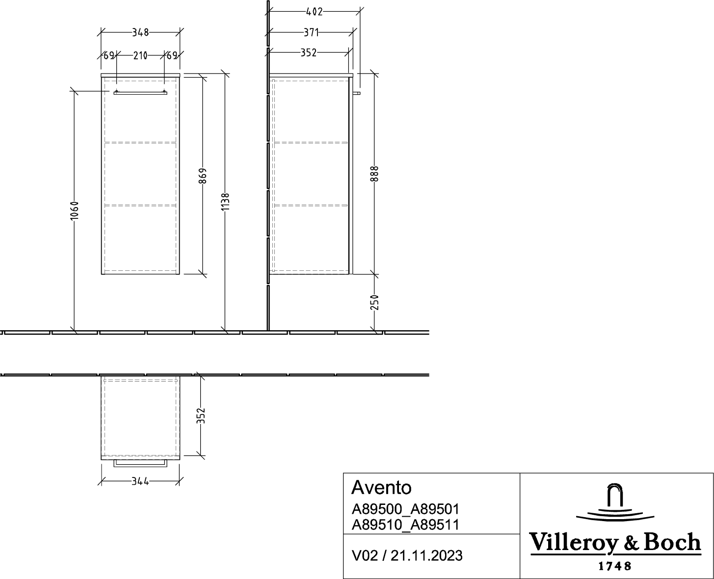 Seitenschrank (1 Tür,Anschlag Re) Avento 350x892x370mm Crystal White VB