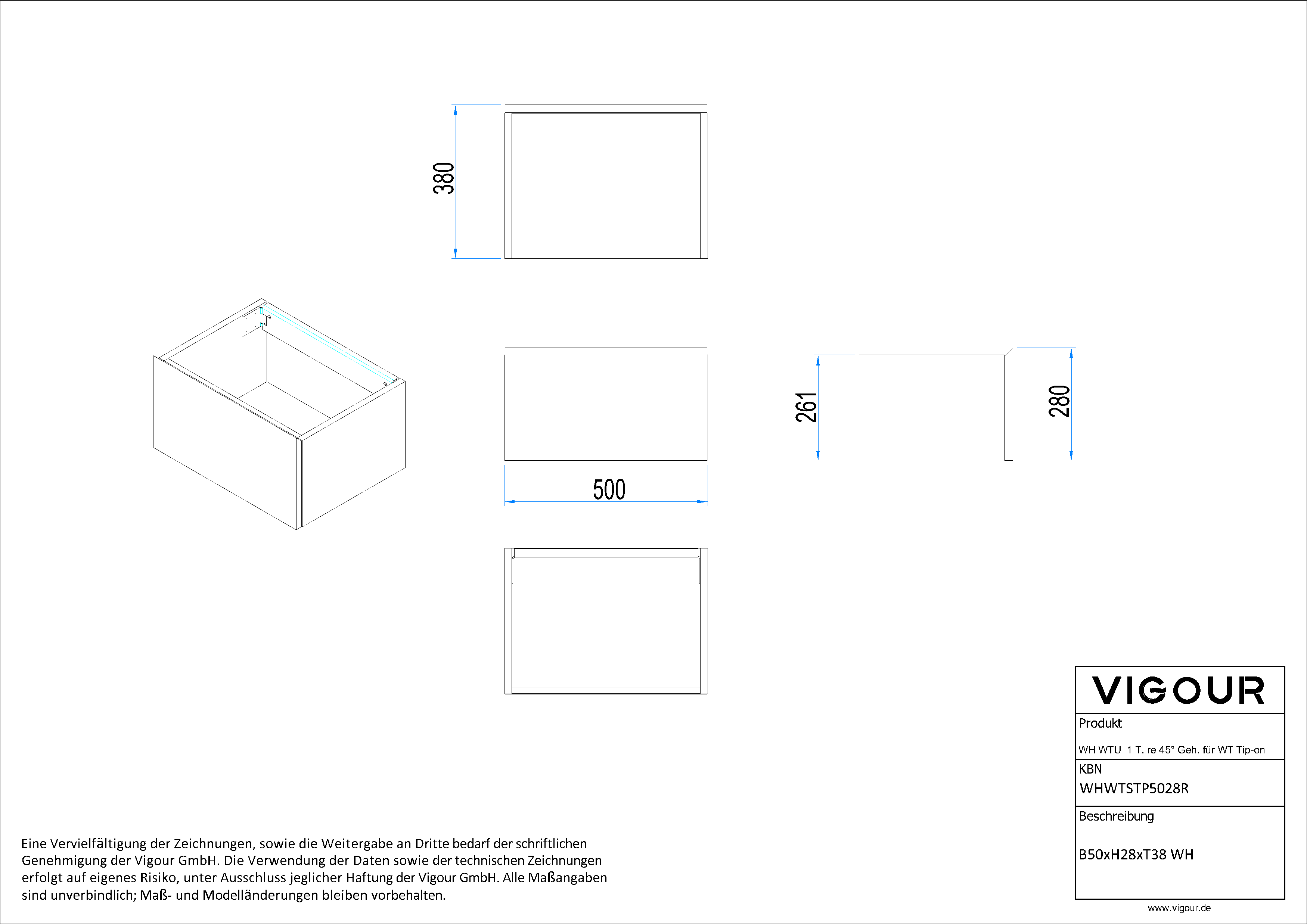 Die Tür ist wahlweise link- oder rechtsseitig positioniert und bietet im Innern reichlich Stauraum für Ihre Badutensilien. Speziell zur Kombination mit den Möbelwaschtischen und Konsolenplatten von Vigour white konzipiert.