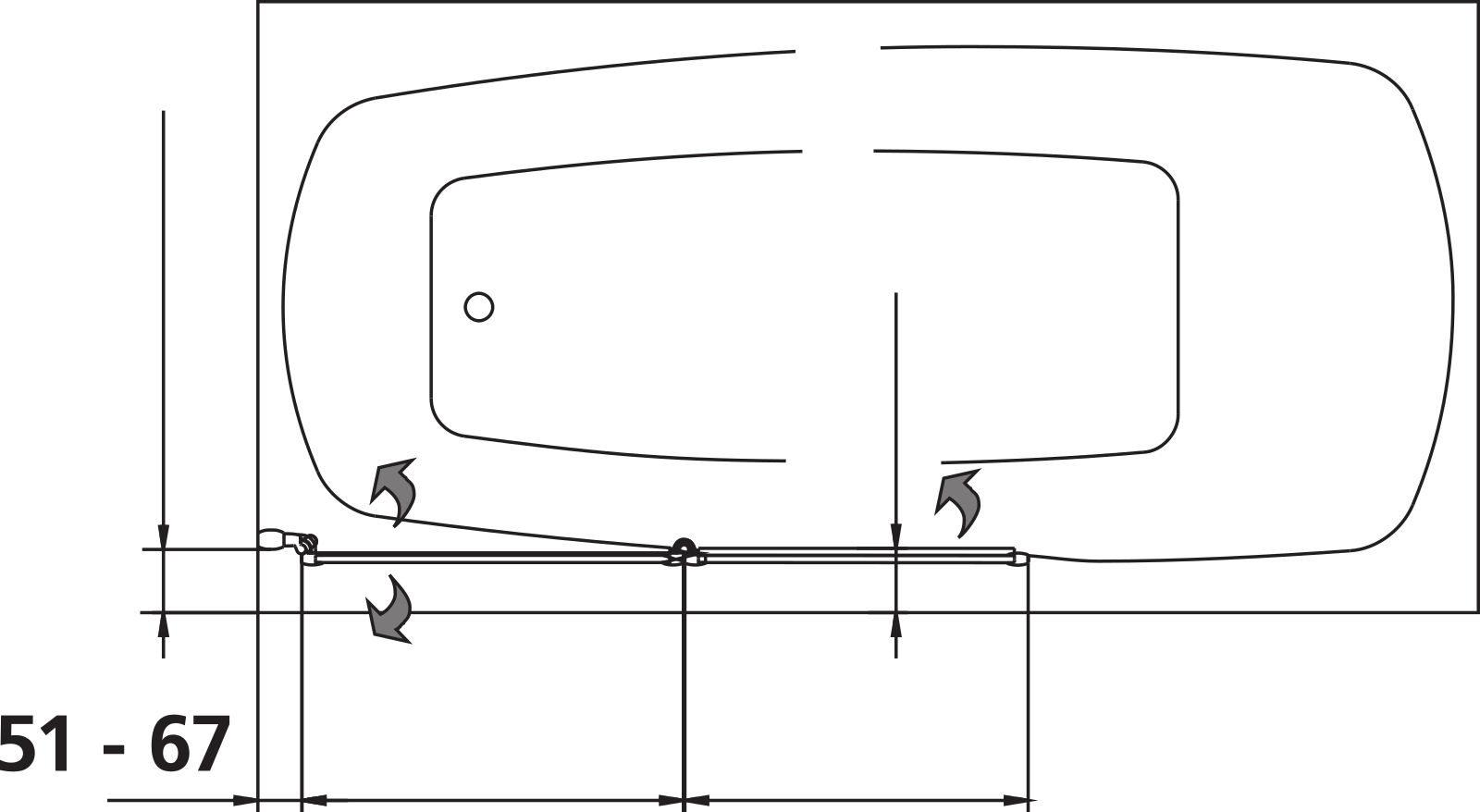 Einbaumaß Duschwanne / Verstellbereich mit Seitenwand