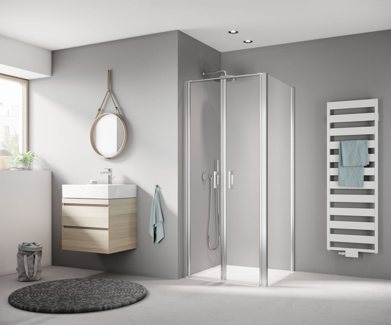 Mit der Pendeltür Liga aus dem Hause Kermi sind Ihren Gestaltungswünschen kaum Grenzen gesetzt. Ob als perfekte Ergänzung zum Einbau in die Nische oder zur Kombination mit einem seitlichen Festfeld: Die Doppeltür mit praktischer Pendel-Funktion und klugem Hebe-Senk-Mechanismus ist die optimale Bereicherung für moderne Dusch-Konzepte. Dabei wirkt das Design so klar wie hochwertig. Das Einscheiben-Sicherheitsglas ist mit der KermiClean-Beschichtung veredelt und mit eleganten Profilen aus wertigem eloxiertem Aluminium designt. Griffe und Gelenke punkten mit robuster Metall-Qualität. Die Liga Pendeltür von Kermi lässt sich, ganz nach räumlichen Gegebenheiten und persönlichen Wünschen, sowohl bei einer Bodenschwelle als auch ebenerdig verbauen. Besonders nützlich: Ein frei platzierbarer, transparenter Handtuchhaken ist im Lieferumfang bereits enthalten!