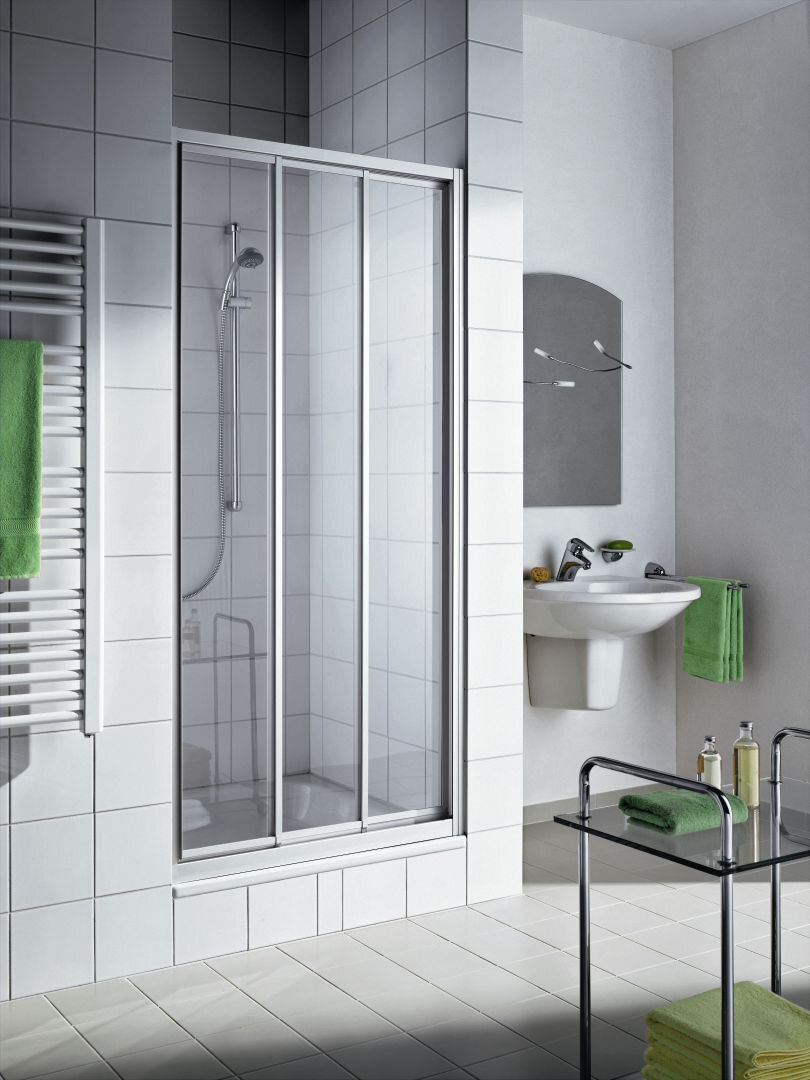 Perfekt für die schnelle und kostengünstige Sanierung: die dreiteilige Kermi Gleittür Ibiza 2000 fügt sich perfekt in Nischenduschen oder kann alternativ mit passenden Seitenwänden kombiniert werden. Das Türsegment kann in beide Richtungen geöffnet werden und bietet eine komfortable Einstiegsbreite. Mit Profilen und Griffleisten aus hochwertig eloxiertem Aluminium.