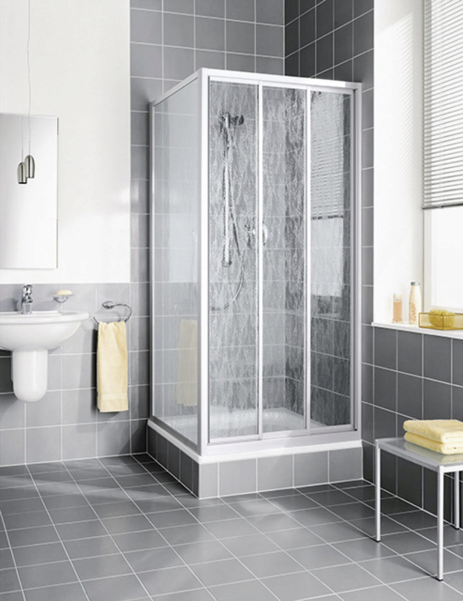 Die dreiteilige Gleittür ist zum Einbau für alle Nischenlösungen und zur Kombination mit der Seitenwand aus der Serie Nova2000 hervorragend geeignet. Die Tür lässt sich in beide Richtungen öffnen und bietet dank der großzügigen Einstiegsbreite eine individuelle Badezimmerlösung.